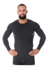 Koszulka Brubeck Active Wool z długim rękawem grafitowa