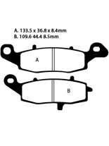 Klocki hamulcowe EBC FA229 A. 133.5 x 36.8 x 8.4mm B. 109.6 x 44.4 x 8.5mm NA LEWY PRZÓD