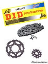 Zestaw napędowy: łańcuch D.I.D.520 V PROFESJONAL O-Ring [118 ogniw] oraz zębatki SUNSTAR do KTM Duke 200 [12-14]