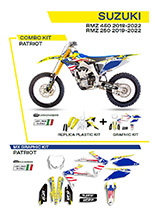 Komplet plastików i naklejek UFO Patriot do Suzuki RMZ 250 (19-), RMZ 450 (18-) żółto-biało-czarny