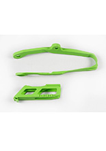 Komplet ślizg+prowadnica łańcucha UFO do Kawasaki KXF 250 (17-20), KXF 450 (16-18) zielony
