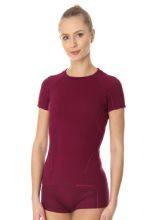Koszulka damska Brubeck Active Wool z krótkim rękawem śliwkowa