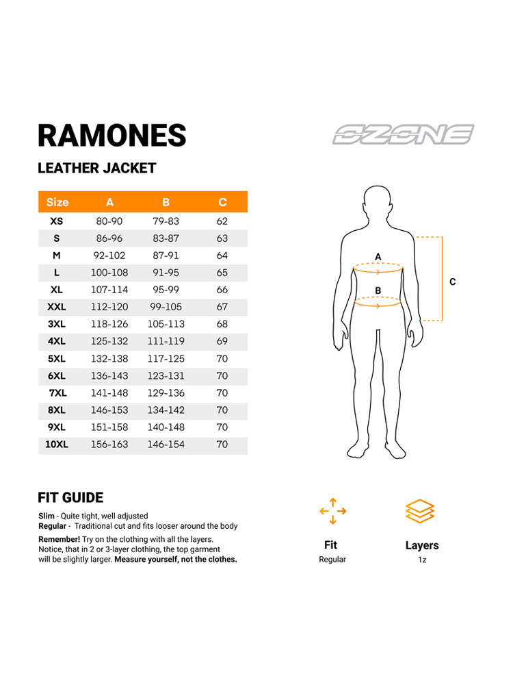 Stylowa kurtka motocyklowa skórzana Ozone Ramones LJ spełni oczekiwania mężczyzn uwielbiających jazdę motocyklem na krótsze i dłuższe podróże. Skóra bawola, z której została wykonana kurtka cechuje się dużą wytrzymałością, dzięki czemu możemy cieszyć się nią przez wiele lat. Jest miękka i przyjemna w dotyku oraz nie powoduje otarć. Kurtka ma poliestrową podszewkę, która jest mało wymagająca w pielęgnacji, a jednocześnie bardzo wygodna. Kurtka motocyklowa skórzana Ozone Ramones LJ została wyposażona w aż cztery zewnętrzne kieszenie, które pomieszczą drobiazgi takie jak: klucze, pieniądze, słuchawki lub niewielki telefon. Dużym atutem jest wewnętrzna kieszeń, w której zmieścimy dokumenty bez obaw o ich zgubienie. Kurtka ma z tyłu krótki zamek umożliwiający spięcie jej ze spodniami. Regulacja w pasie zapewni dobre dopasowanie kurtki do naszych potrzeb i budowy ciała. Ochraniacze barków i łokci level 1 pochłaniają znaczną część siły wytworzonej podczas uderzenia. Z tyłu na plecach znajduje się kieszeń, do której możemy włożyć dokupiony oddzielnie portektor. Warto dodać, że kurtka ma homologację,  potwierdza spełnienie norm bezpieczeństwa.