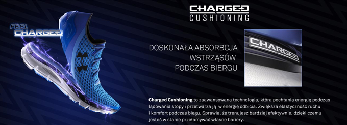• Podeszwa środkowa wykonana w technologii Charged Cushioning® optymalną amortyzację i zwrot energii (energia powstała podczas lądowania stopy przetwarzana jest na energię kolejnego odbicia)