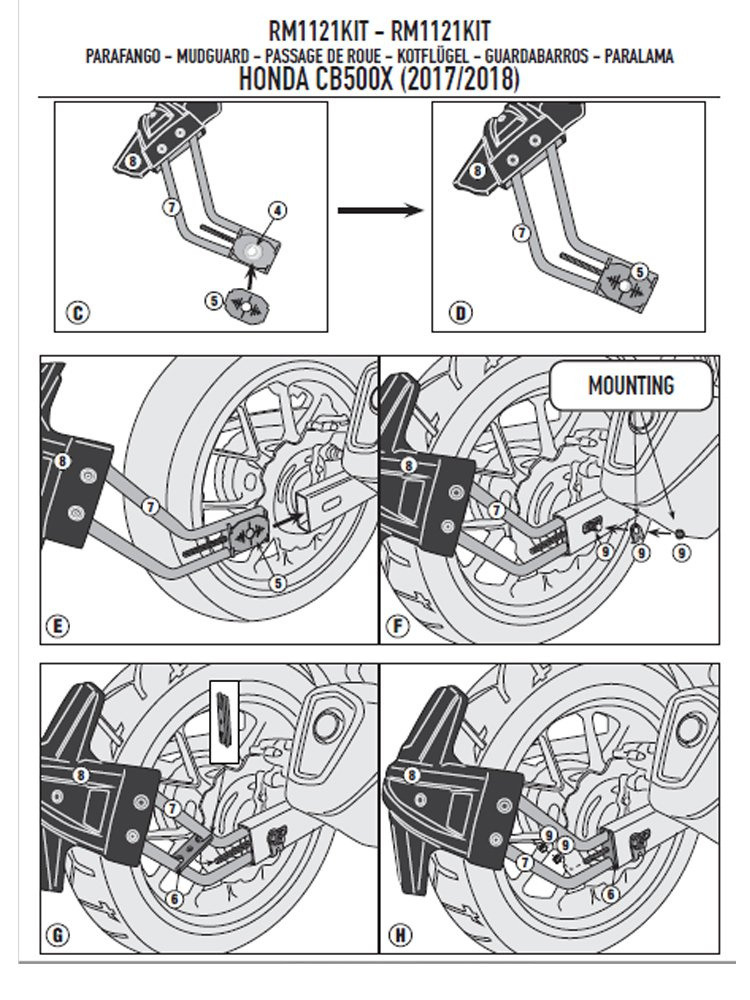 Błotnik tylny GIVI RM02 Honda CB 500 X [16-18][mocowanie w zestawie]