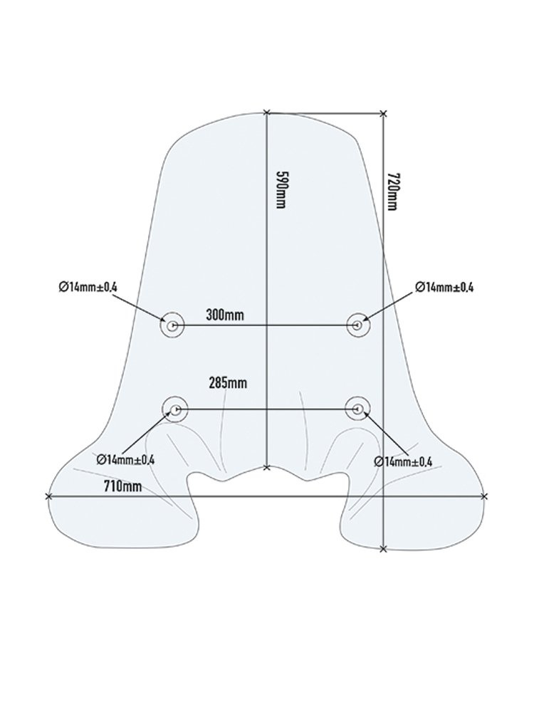- montaż szyby wymaga oryginalnie nawierconych otwór w osłonie kierownicy (wymagane również do montażu oryginalnej szyby), jeśli zamontowana osłona nie posiada otworów przed montażem konieczne będzie ich nawiercenie,