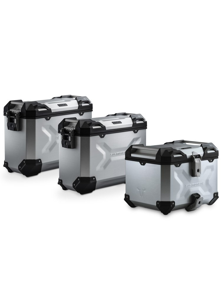 Ten zestaw to wszechstronny i bezobsługowy pakiet na każdą wycieczkę. Wodoszczelne i pyłoszczelne aluminiowe kufry TRAX ADV, czyli dwa kufry boczne i centralny zapewniają najlepszą ochronę bagażu. Dedykowane dla danego modelu motocykla stelaże na kufry boczne PRO oraz stelaż na kufer centralny Adventure-RACK gwarantują optymalne dopasowanie i bezpieczne zamocowanie aluminiowych kufrów. Nasze wytrzymałe aluminiowe kufry TRAX ADV przekonują swoją stabilnością, nieprzepuszczalnością wody i pyłu, eleganckim stylem, przemyślanymi funkcjami i dużym wyborem dodatkowych akcesoriów. Aby jeszcze zwiększyć pojemność ładunkową, zestaw Adventure zawiera dwie akcesoryjne torby TRAX M / L. Są one mocowane na pokrywy kufrów bocznych. Torby te są wodoszczelne, a bagaż w nich schowany będzie bardzo szybko dostępny.