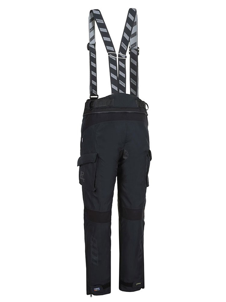 Spodnie motocyklowe Exegal wchodzą w skład linii odzieży motocyklowej - ArmaProtection, która cechuje się wysokiej jakości materiałami oraz nowoczesnymi technologiami. Spodnie wykonane są z laminatu wodoodpornej membrany Gore-Tex z trwałym i mocnym materiałem Cordura. Dla wzmocnienia na kolanach zastosowano wstawki z tkaniny Armacor. Na udach znajdują się zamki wentylacyjne, które odpowiadają za wymianę powietrza. Praktyczna i funkcjonalna podpinka ocieplająca zapewnia ciepło kiedy temperatura na zewnątrz spadnie. W celu zapewnienia pełnej swobody ruchu w konstrukcje spodni wbudowano elastyczne wstawki. Certyfikowane ochraniacze D3O, które stanowią podstawowe zabezpieczenie podczas upadku, umieszczono na kolanach oraz biodrach. O poprawę widoczności motocyklisty na drodze, zarówno w świetle dziennym jak i nocnym dbają elementy odblaskowe 3M Scotchlite. Za pomocą podwójnej regulacji w pasie oraz rzepów na mankietach uzyskamy indywidualne dopasowanie do sylwetki. Takie detale jak odpinane szelki, kieszenie czy zamek do spięcia z kurtka poprawią komfort jazdy.