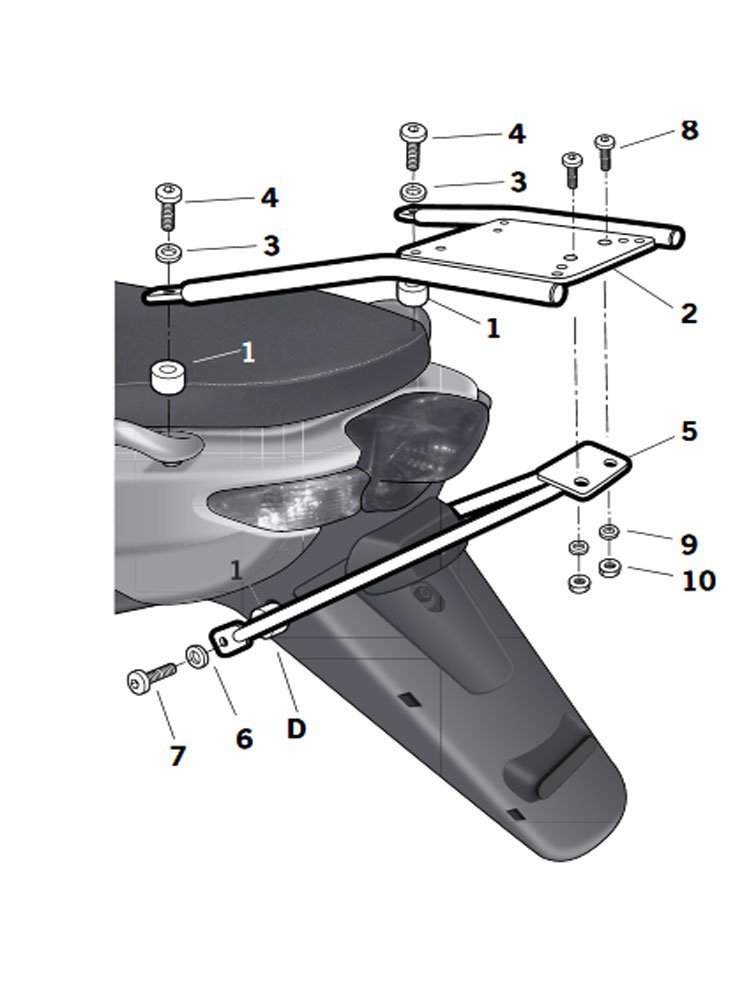 - Umożliwia montaż kufra centralnego na motocyklu, co zwiększa funkcjonalność i przestrzeń bagażową.