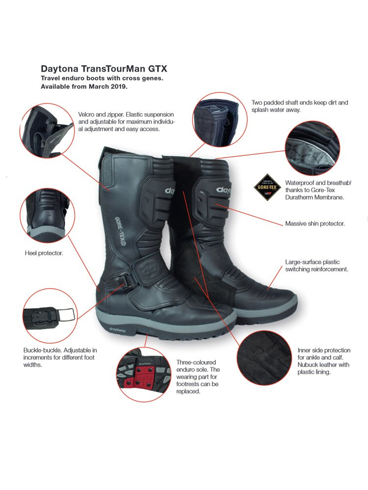 Cechy butów motocyklowych turystycznych Daytona TransTourMan GTX: