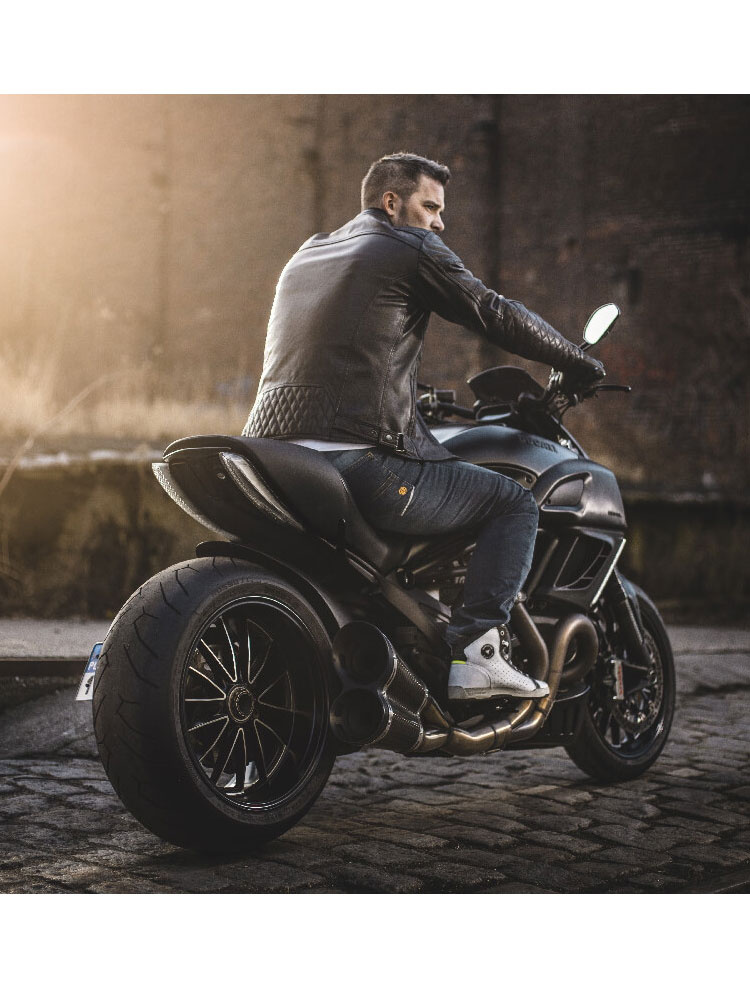 Ruven to klasyczna skórzana kurtka motocyklowa od Modeki, która charakteryzuje się głęboką czernią oraz pikowanymi przeszyciami na rękawach, ramionach i plecach. Do uszycia kurtki wykorzystano wysokiej jakości skórę bydlęcą, która odznacza się wyjątkową miękkością oraz odpornością na ścieranie i przetarcia. Potwierdza to certyfikat bezpieczeństwa EN17092:2017. Jako kurtka ochronna posiada atestowane ochraniacze SW® umieszczone na łokciach i ramionach. Protektory te skutecznie rozpraszają energię uderzenia, a także są niezwykle wygodne w noszeniu. Wewnątrz kurtki znajduje się kieszeń przeznaczona na opcjonalny ochraniacz pleców SAS-TEC®, który dostępny jest jako oddzielny produkt. Niewielka odblaskowa wstawka zwiększa Twoją widoczność na drodze. Model ten posiada dopasowany krój, który nie ogranicza ruchów. Za pomocą nap w pasie sprawisz, że kurtka będzie jeszcze lepiej przylegać do ciała. Neoprenowe wykończenie kołnierza zwiększa komfort noszenia. Materiał ten jest bardzo przyjazny dla skóry. Rękawy kurtki posiadają zamki ułatwiające jej zakładanie oraz napy chroniące przed rozsunięciem się zamków. Telefon i dokumenty możesz mieć zawsze pod ręką dzięki kieszeniom zewnętrznym i wewnętrznym.
