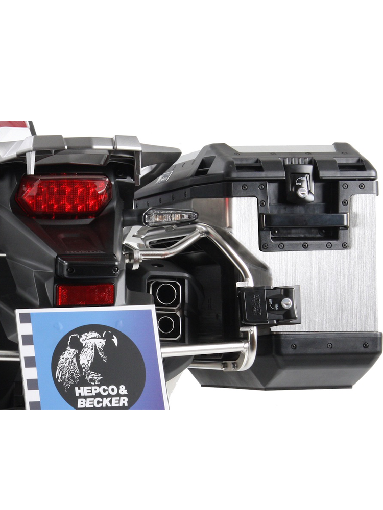 - zestaw kufrów bocznych Xplorer Cutout wraz ze stelażem bocznym (na prawą i lewą stronę) ze stali nierdzewnej,