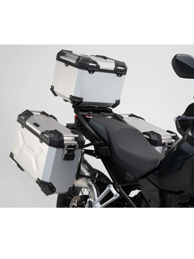 Zestaw: kufry boczne + kufer centralny + stelaże TRAX ADV SW-MOTECH do motocykla BMW F 750/ 850 GS [18-] F 850 GS Adv [20-], F 800 GS [24-]srebrne