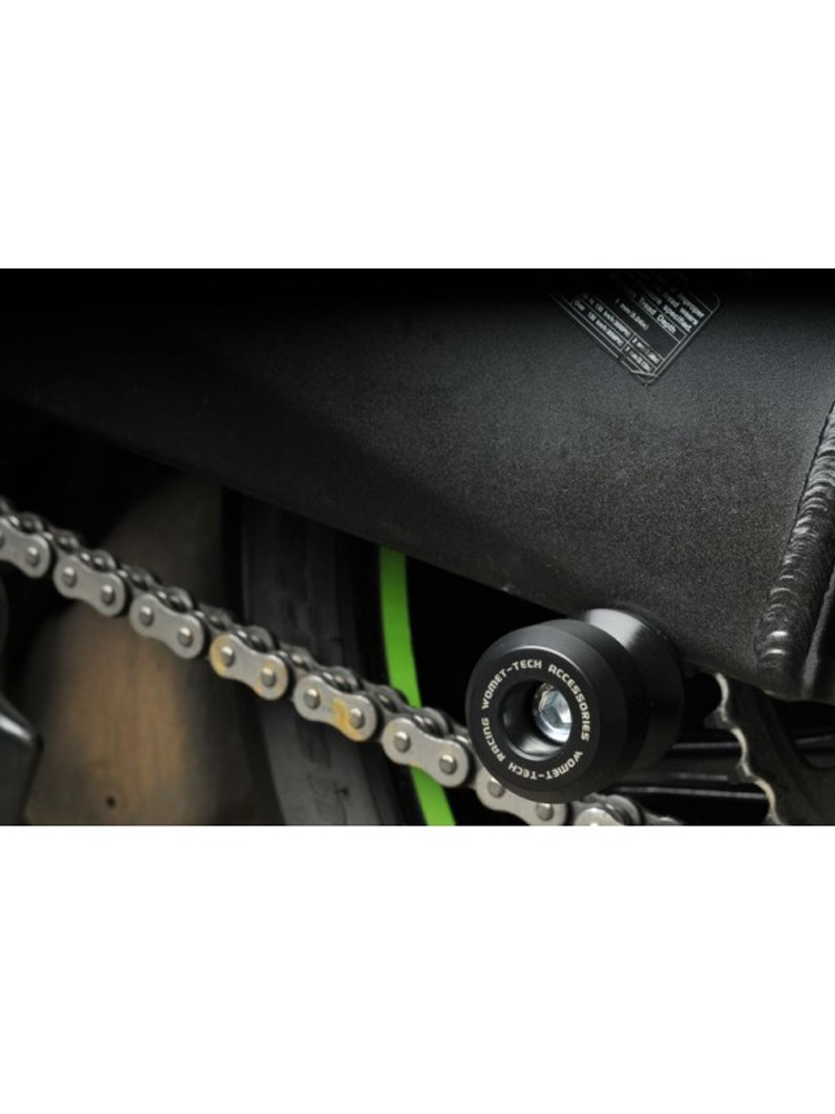 Przeznaczone są do mocowania w fabrycznych otworach w tylnym wahaczu, ich montaż przebiega błyskawicznie. Spełniają dwie funkcje:Minimalizują uszkodzenia wahacza i służą jako jako adaptery do podnoszenia motocykla za pomocą podnośnika. Efektowny design sprawia, że rekomendujemy je jako elementy tuningowe.