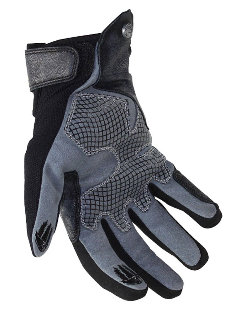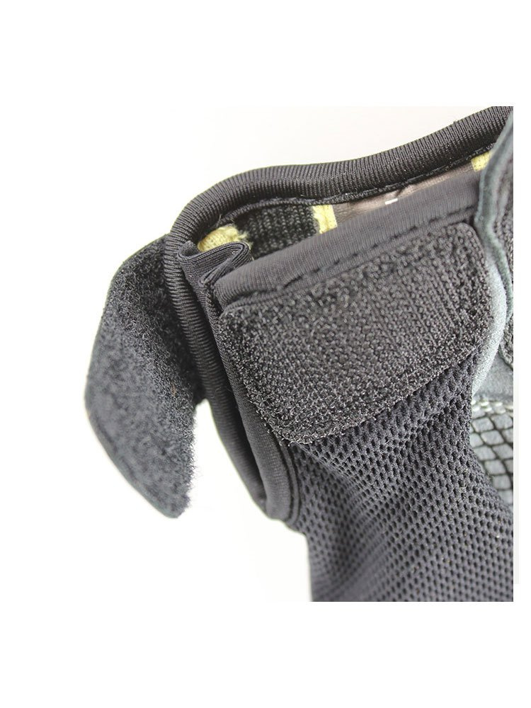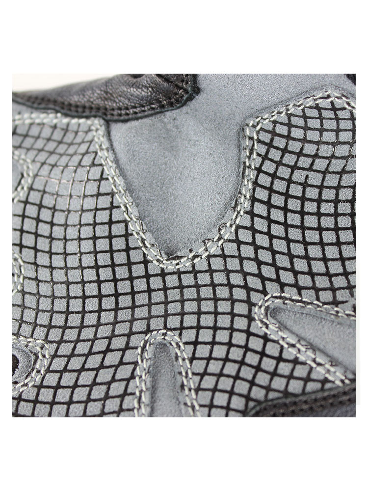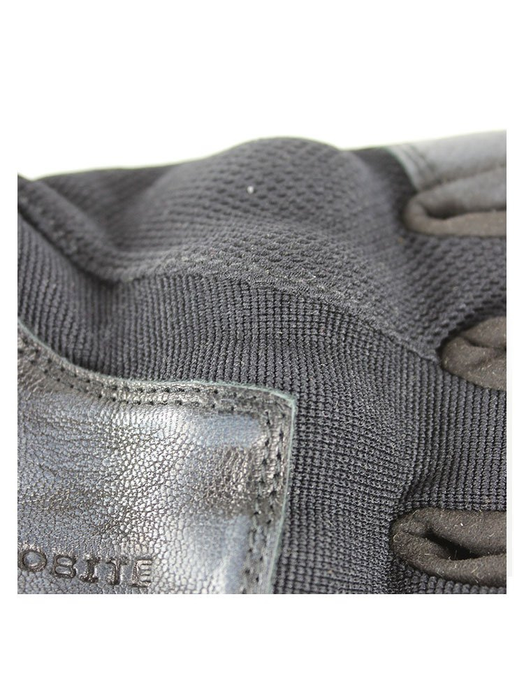 - Najwyższej jakości elastyczna 4-kierunkowa i mocna wentylowana siatka ze skórzanymi panelami na palcach i dłoni