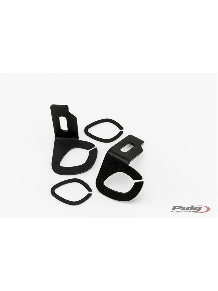 Komplet uchwytów umożliwiający montaż fabrycznych kierunkowskazów motocykla w akcesoryjnym mocowaniu tablicy rejestracyjnej PUIG. Teraz możesz cieszyć się krótkim “ogonem” w niższej cenie – nie jesteś skazany na akcesoryjne LEDowe kierunkowskazy i przerabianie instalacji elektrycznej. Kupujesz tylko fender eliminator do swojego motocykla i komplet adapterów, przekładasz oryginalne kierunki – gotowe!