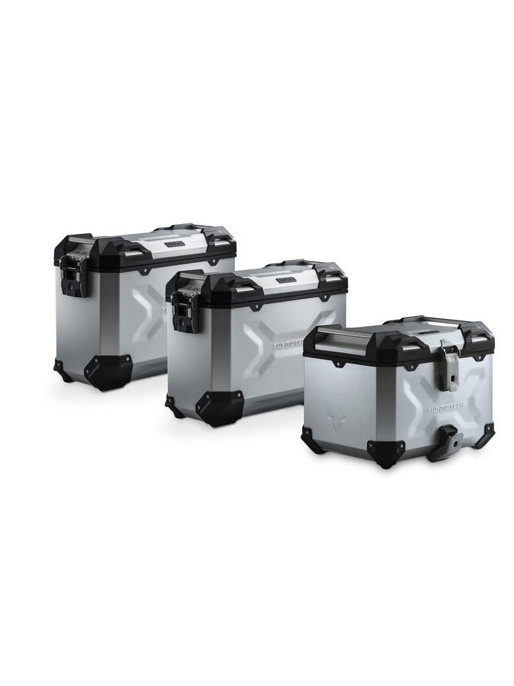 Zestaw: kufry boczne + kufer centralny + stelaże ADVENTURE SW-MOTECH do motocykla BMW F 750 [18-] / 850 GS [17-19], F 800 GS [24-] srebrne