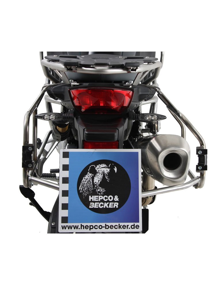 - zestaw kufrów bocznych Xplorer Cutout wraz ze stelażem bocznym (na prawą i lewą stronę) ze stali nierdzewnej,