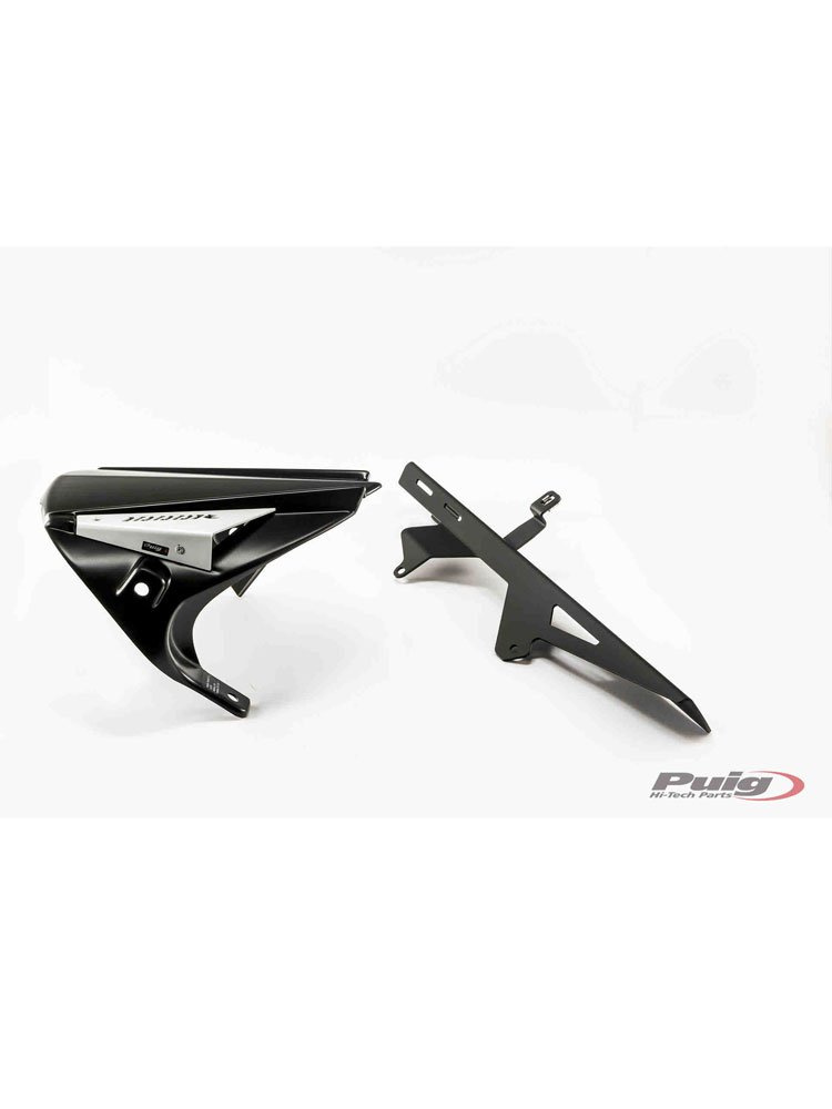 Błotniki PUIG zapewnia ulepszoną ochronę przed zanieczyszczeniami z okolic opony. Wykonane z solidnego polikarbonu, gotowe do użycia – czarne matowe lub w imitacji karbonu. Zintegrowana osłona łańcucha. W zestawie komplet mocowań do danego modelu motocykla.