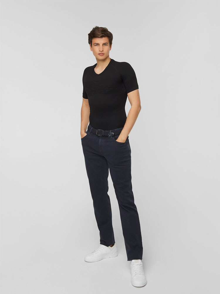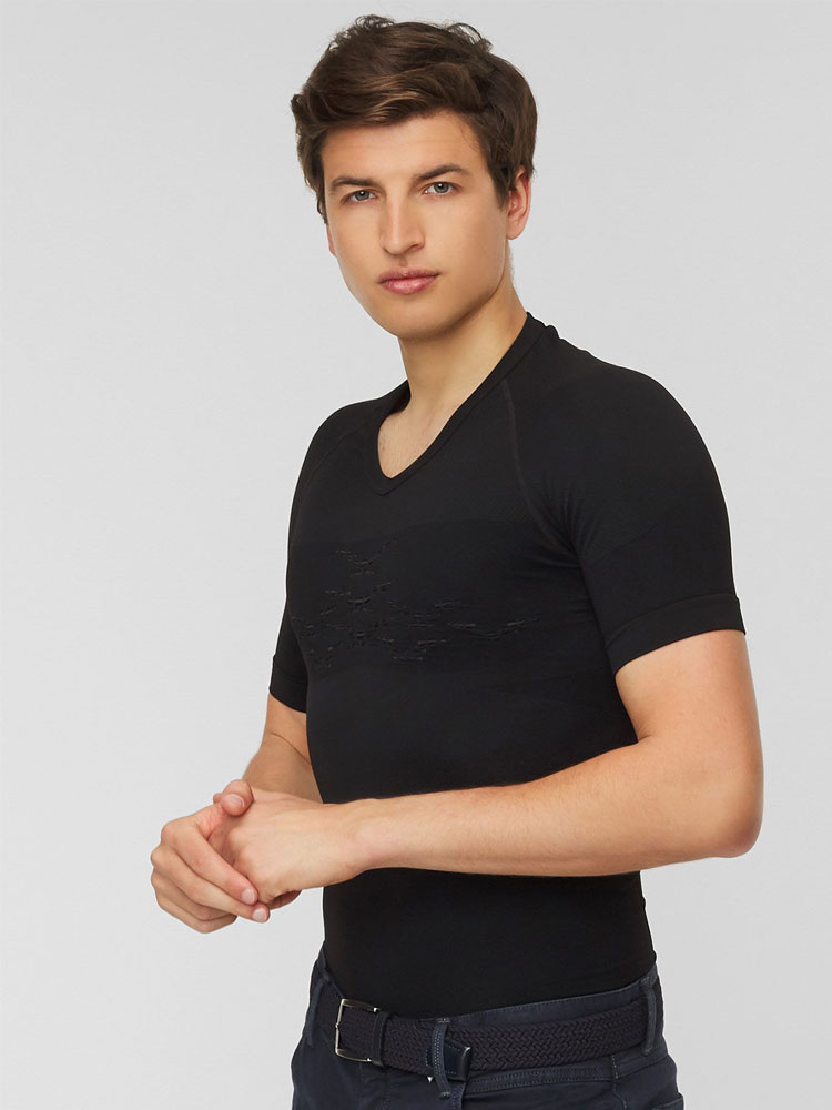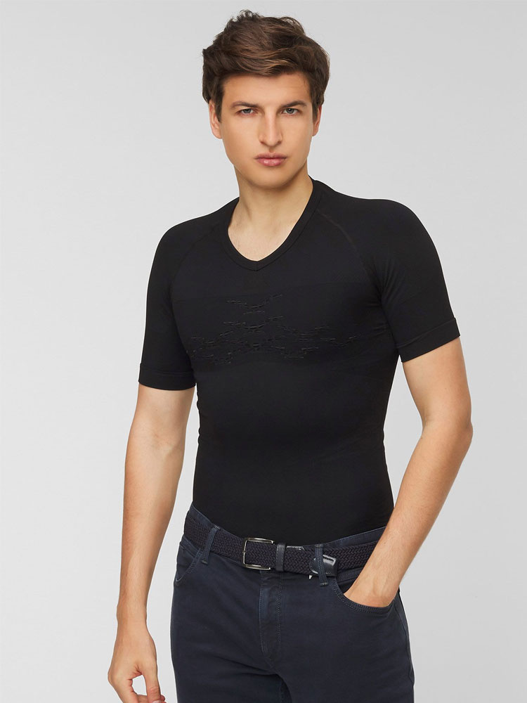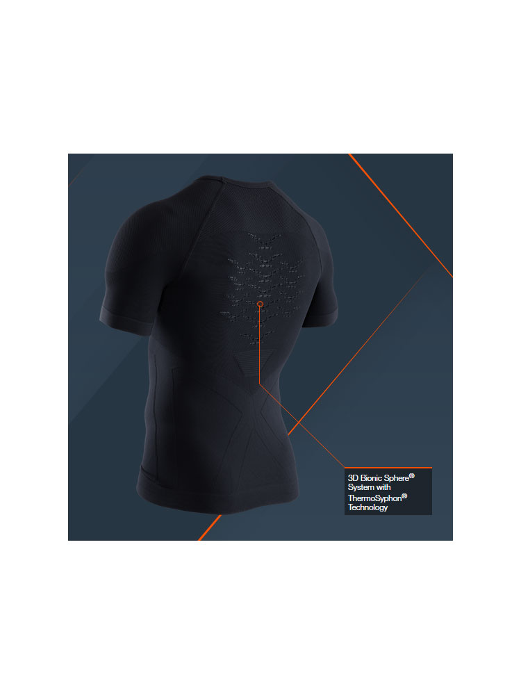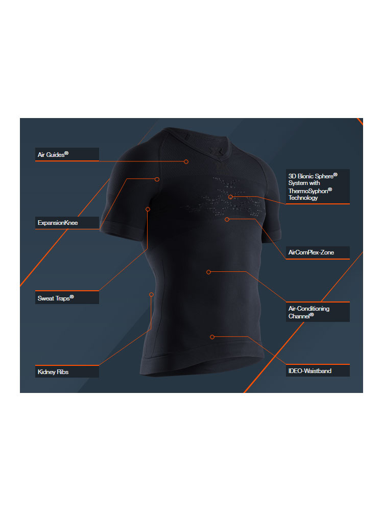 Koszulka termoaktywna X-Bionic Energizer 4.0 LT jest niezwykle lekką i przyjazną dla skóry bielizną, która doskonale sprawdzi się w codziennym użytkowaniu. Wykonana w technologii Retina® posiada dokładnie rozmieszczone inteligentne strefy zarządzania wilgocią oraz ciepłem. Dzięki opatentowanemu systemowi 3D Bionic Sphere® z technologią ThermoSyphon® umieszczonemu na przodzie i plecach wspomaga naturalny proces regulujący temperaturę ciała. Podczas wysiłku zapewnia chłód, natomiast w czasie odpoczynku ciepło. Pozwala to na utrzymanie optymalnej temperatury ciała w każdej sytuacji. Innowacyjne struktury Air Giudes® wraz ze strategicznie rozmieszczonymi kanałami wentylacyjnymi Air-Conditioning Channel® w kontrolowany sposób zarządzają wyprodukowana wilgocią oraz ciepłem. Pod pachami umieszczone zostały panele SweatTraps®, które efektywnie wyłapują krople potu zapobiegając ich kapaniu. Strefa AirComPlex-Zone zapewnia ochronę wrażliwego obszaru splotu słonecznego za pomocą specjalnych kanałów. Koszulka posiada ergonomicznie dopasowany pas Ideo-Waistband, który utrzymuje ją na miejscu nawet podczas ciągłej aktywności. Elastyczne strefy na barkach oraz strefy o zwiększonej izolacji poprawiają komfort użytkowania.