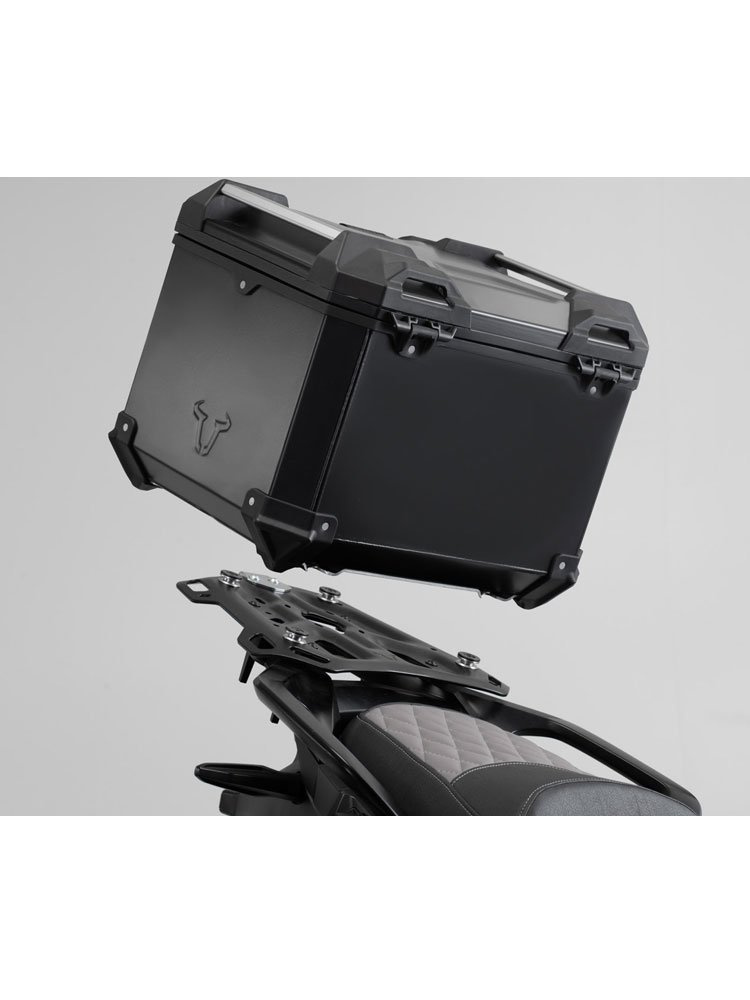 Kompletny zestaw, czyli wszystkie produkty pod jednym indeksem za pomocą których zamontujesz kufer centralny na swoim motocyklu. W skład tego zestawu wchodzą wszystkie produkty, tj.: kufer centralny TraX ADV, zamki do kufrów, płyta adaptacyjna, dedykowany do motocykla stelaż ADVENTURE-RACK. Przy rozwoju TraX ADV pojawiło się następujące wyzwanie. Zbudować kufry, które pokonają wszystkie przeszkody motocyklowej codzienności, lekkie i łatwe w obsłudze, po prostu dobre: od praktycznego zamka błyskawicznego, przez zdejmowalną pokrywę, po ergonomiczny uchwyt. TraX ADV łączą wysoką jakość z niską wagą. Ważą tylko od 4,6kg do 5,4 kg, czyli należą do grupy najlżejszych kufrów w swojej klasie.