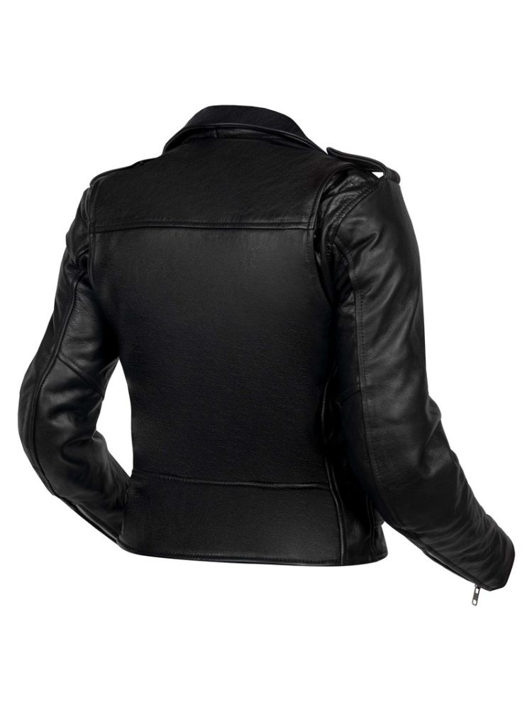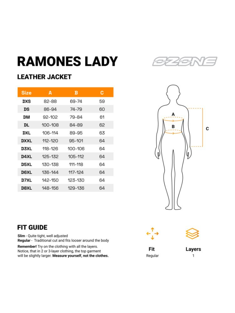 Wygodna kurtka skórzana damska Ozone Ramones została stworzona z myślą o wymagających kobietach, które uwielbiają jazdę na krótkie i długie dystanse. Jej stylowy, klasyczny wygląd przypadnie do gustu wszystkim motocyklistkom. Bawola skóra, z której została wykonana kurtka jest wytrzymała i miękka. Dzięki temu dobrze dopasowuje się do anatomicznej budowy ciała zapewniając komfort. Podszewka z poliestru jest przyjemna w dotyku i nie powoduje nieprzyjemnego drapania. Cztery kieszenie zewnętrzne pomieszczą pieniądze, klucze lub mały telefon, a kieszeń wewnętrzna dokumenty. Kurtka skórzana damska Ozone Ramones została wyposażona wygodną regulację w pasie, która umożliwia dostosowanie kurtki do naszych preferencji. Dwa zamki do spięcia ze spodniami różnią się długością co ułatwia dopasowanie kurtki do różnego rodzaju spodni. Kurtka ma protektory barków i łokci level 1, które minimalizują powstanie poważnej kontuzji lub urazu podczas zderzenia. Dodatkowy ochraniacz na plecy zmieścimy w specjalnej kieszeni umieszczonej z tyłu. Ozone Ramones ma homologację, która potwierdza spełnienie norm bezpieczeństwa.