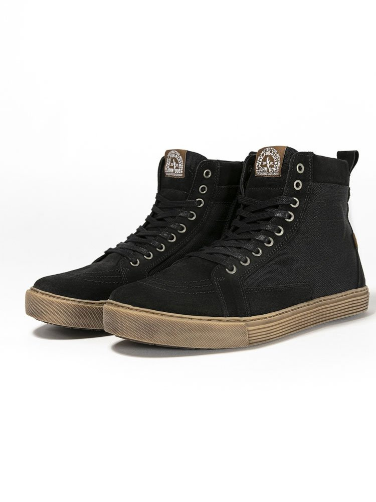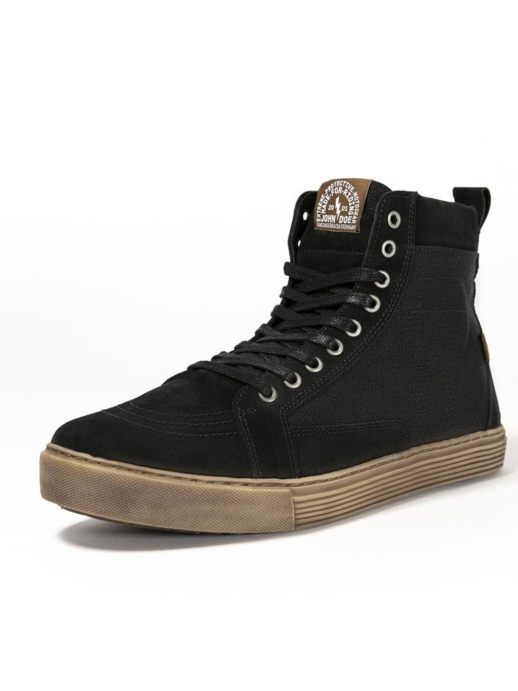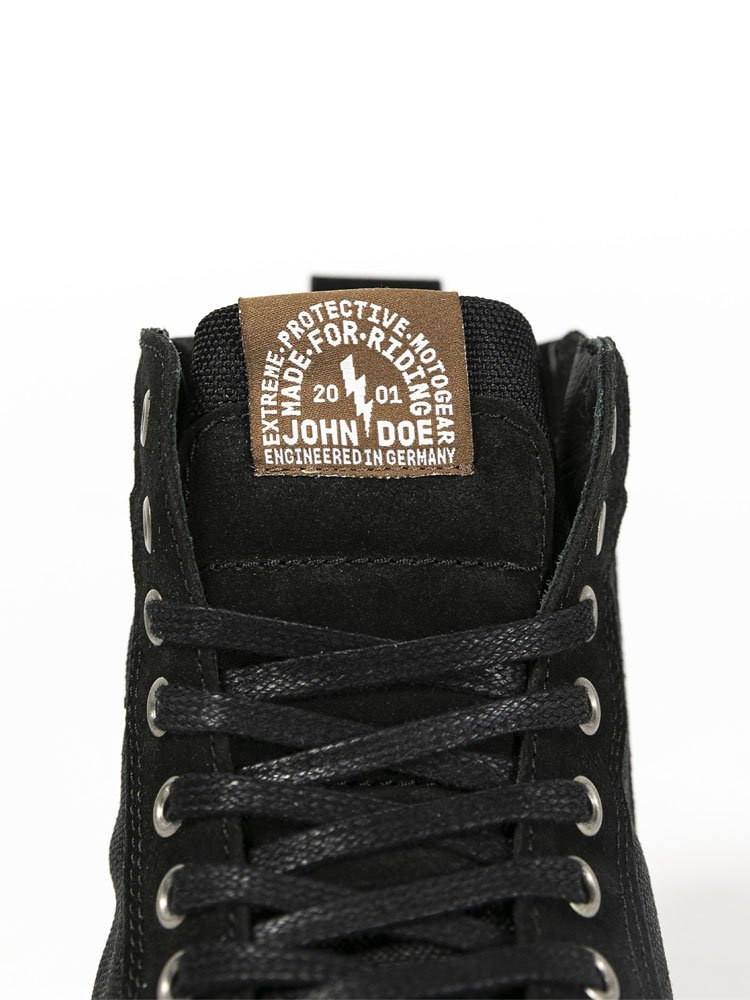 John Doe Neo to motocyklowe buty utrzymane w stylistyce popularnych sneakersów. Wykonane są z odpornej na przetarcia i przebicia skóry bydlęcej o grubości 1,1 mm. Naturalne właściwości skóry sprawiają że obuwie jest bardzo miękkie ale i bardzo trwałe. Wyściółka XTM-Fibre wykorzystuje technologię włókien takich jak DuPont™ Kevlar® Coolmax® i Lycra® aby zapewnić jak najbardziej komfortowe doznania podczas jazdy. Zastosowane materiały umożliwiają swobodny przepływ powietrza dzięki czemu świetnie odprowadzają wilgoć oraz zapobiegają powstawaniu nieprzyjemnych zapachów wewnątrz. Kolejną cechą butów jest trzypunktowa ochrona składająca się ze wzmocnień zastosowanych na kostkach, piętach, a także z przodu. Dodatkowa wstawka na głównej części cholewki pozwala na komfortową i bezpieczną zmianę biegów bez ryzyka nadmiernego zużywania się skóry. Stylowa antywstrząsowa podeszwa tłumi drgania przenoszone podczas jazdy oraz utrzymuje stopę stabilnie na podnóżkach. Oprócz sznurowadeł Neo zapinane są również na suwak znajdujący się po wewnętrznej stronie buta. Takie rozwiązanie pozwala na szybkie i wygodne zakładanie oraz zdejmowanie obuwia.