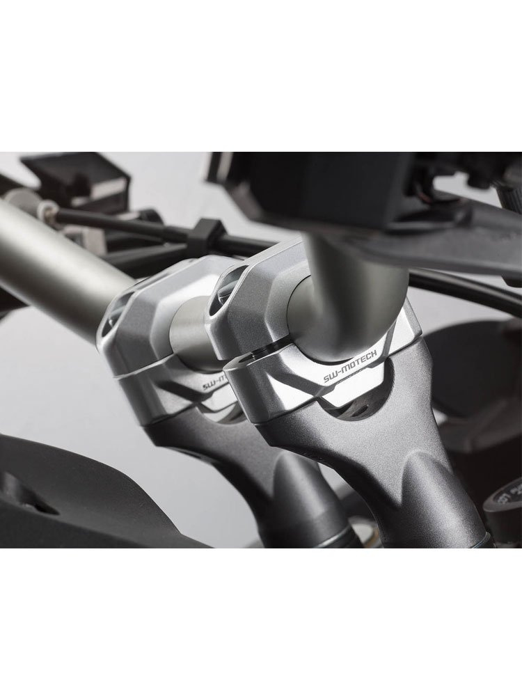 Zestaw podwyższający kierownicę SW-Motech Aprilia, Honda, Benelii, KTM, Suzuki, Yamaha (wybrane modele) [H: 30mm] srebrny