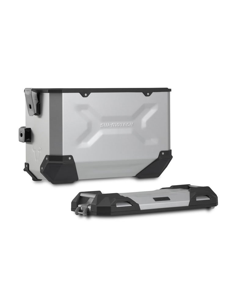 Wytrzymałe aluminiowe kufry TRAX ADV sprawiają, że poczujesz się jak w domu na każdym odcinku drogi. Całkowicie zdejmowana pokrywa z uchwytami wykonanymi z anodyzowanego aluminium oraz zapięcie błyskawiczne ułatwiają załadunek i rozładunek bagażu motocyklowego; fazowana krawędź boczna zapewnia duży prześwit podczas pokonywania zakrętów. Dzięki temu kompletnemu rozwiązaniu masz wszystkie elementy, które potrzebujesz podczas podróży: dwa wodoodporne kufry boczne TRAX ADV, dwa zdejmowane stelaże boczne SW-MOTECH, zestaw adapterów, zestaw zamków, ogranicznik pokrywy i zabezpieczenie antykradzieżowe w atrakcyjnej cenie. Specjalny stelaż i wielkość kufrów są idealnie dopasowane do tylnego kształtu i układu wydechowego motocykla. Kufry TRAX ADV są stabilne i nieprzepuszczalne dla pyłu i wody, a także łatwe w obsłudze.