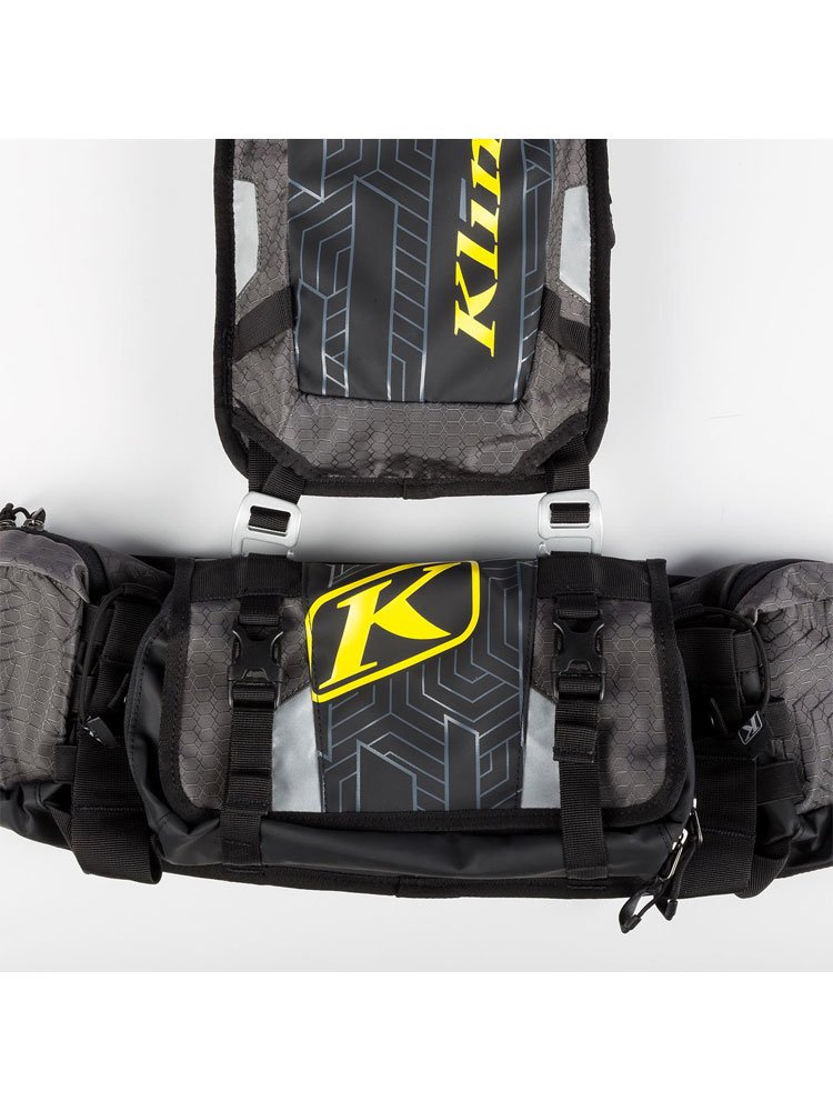 Lekki i praktyczny plecak motocyklowy Klim Quench Pak wyposażony w system nawodnienia Hydrapak®. Solidna konstrukcja posiada elementy odblaskowe 3M™ Scotchlite™, które zwiększają Twoją widoczność na drodze. Komfort użytkowania plecaka zapewnia wyprofilowana pianka EVA umieszczona na plecach. Quench Pak posiada regulowane paski naramienne oraz wewnętrzną kieszeń zamykaną na zamek. Model przystosowany jest do zamontowania opcjonalnej torby na narzędzia Scramble Pak. Na wyposażeniu plecaka znajduje się także gwizdek bezpieczeństwa. Z plecakiem Klim Quench Pak zapewnione jest nawodnienie w każdym momencie.