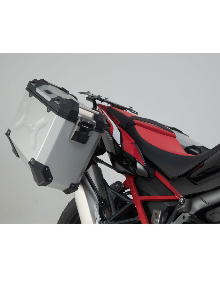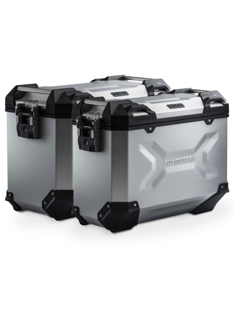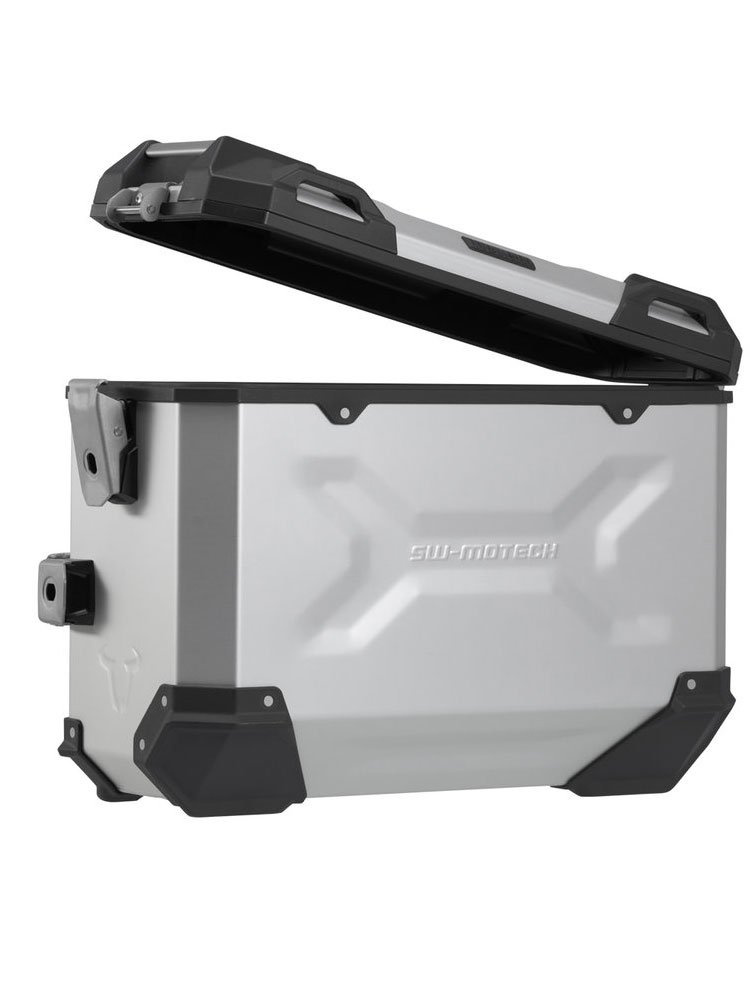 Wytrzymałe aluminiowe kufry TRAX ADV sprawiają, że poczujesz się jak w domu na każdym odcinku drogi. Całkowicie zdejmowana pokrywa z uchwytami wykonanymi z anodyzowanego aluminium oraz zapięcie błyskawiczne ułatwiają załadunek i rozładunek bagażu motocyklowego; fazowana krawędź boczna zapewnia duży prześwit podczas pokonywania zakrętów. Dzięki temu kompletnemu rozwiązaniu masz wszystkie elementy, które potrzebujesz podczas podróży: dwa wodoodporne kufry boczne TRAX ADV, dwa zdejmowane stelaże boczne SW-MOTECH, zestaw adapterów, zestaw zamków, ogranicznik pokrywy i zabezpieczenie antykradzieżowe w atrakcyjnej cenie. Specjalny stelaż i wielkość kufrów są idealnie dopasowane do tylnego kształtu i układu wydechowego motocykla. Kufry TRAX ADV są stabilne i nieprzepuszczalne dla pyłu i wody, a także łatwe w obsłudze.