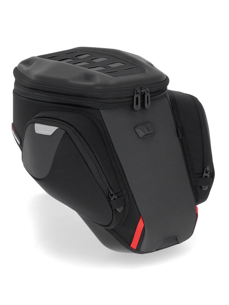 Torby na zbiornik PRO mają elegancki i ponadczasowy design oraz są wykonane z trwałych materiałów i posiadają wyrafinowane cechy produktu: Nylon balistyczny chroni bagaż przed wstrząsami, wiatrem i warunkami atmosferycznymi. Wierzch wykonany z laminowanego materiału EVA nadaje tankbagom charakterystyczny kształt, a wraz z mocowaniem MOLLE zapewniają bezpieczne mocowanie smartfona i tabletu. Tank bag wyposażony jest w fabrycznie zamontowane mocowanie dedykowane do sprzedawanego osobno pierścienia na zbiornik. Pozwala to na idealne dopasowanie torby do zbiornika danego motocykla.
