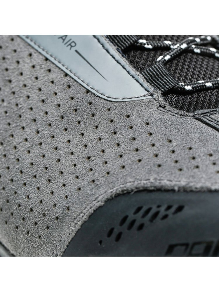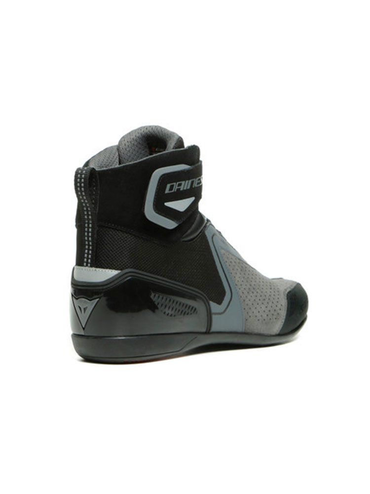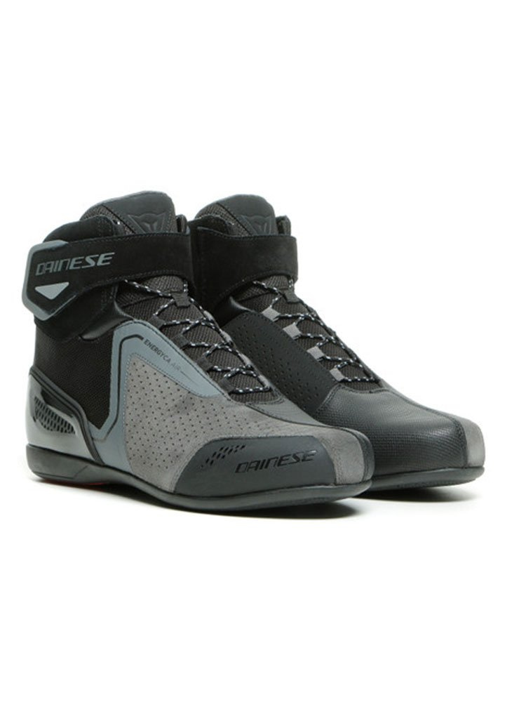 Sportowe buty marki Dainese wykonane z wytrzymałej skóry bydlęcej z perforacjami zapewniającymi wentylację. Energyca reprezentują najlepsze sportowe DNA Dainese. Dobrze wentylowane, zapewniają doskonały poziom ochrony podczas codziennych czynności. Wysoki poziom ochrony przed urazami zapewniają liczne wzmocnienia chroniące palce, pięty oraz kostki. Potwierdza to uzyskany przez buty Energyca Air certyfikat CE - Cat. II - EN 13634. Wnętrze buta posiada oddychającą podszewkę oraz antypoślizgową wkładkę zapobiegającą przemieszczaniu się stopy. Model Energyca Air doskonale trzyma się podnóżków oraz podłoża, a to za sprawą innowacyjnej, gumowej podeszwy o zróżnicowanym wzorze. Klasyczne sznurowane zapięcie zabezpieczone patką utrzymuje stopę na właściwym miejscu.