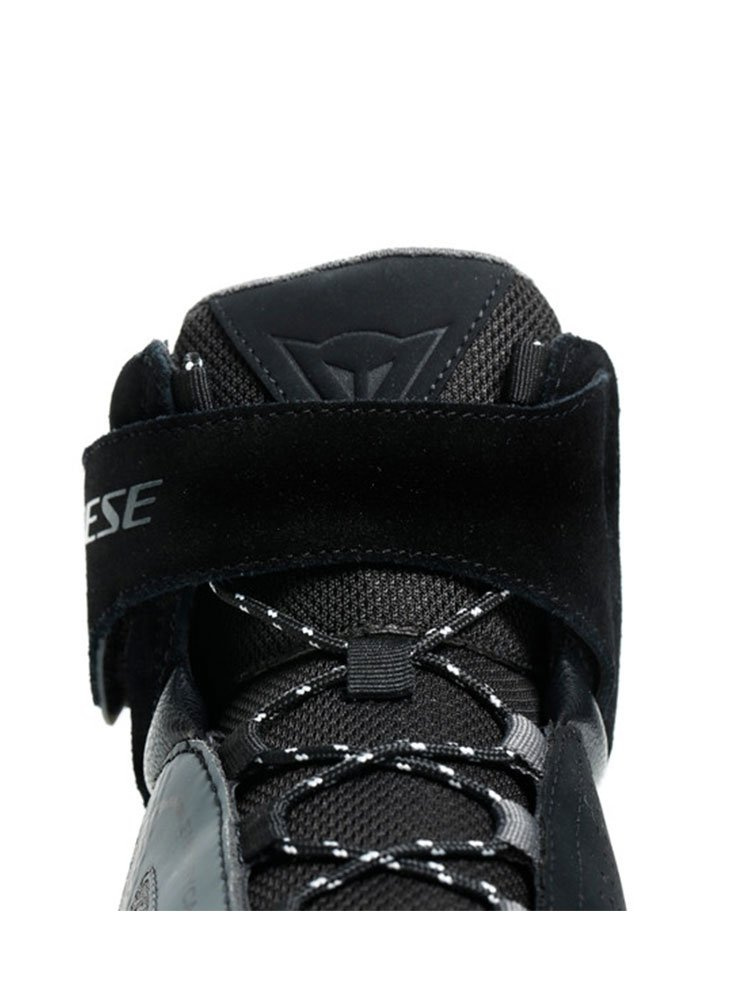 Opracowane przez Dainese obuwie o wysokim poziomie bezpieczeństwa potwierdzone certyfikatem zgodnym z normą EN 13634 jako obuwie ochronne dla profesjonalnych motocyklistów, uzyskane w wyniku testów takich jak odporność na ścieranie i uderzanie, ryzyko pęknięcia, sztywność obuwia, siły wiązania czy odporność na poślizg.