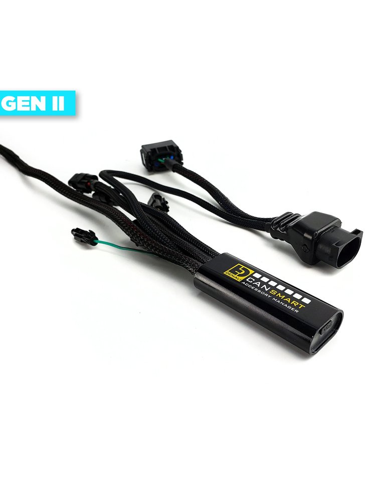 W przeciwieństwie do CANsmart Gen I, wszystkie cztery obwody Gen II mogą zapewnić pełne 10 amperów ciągłej mocy, a każdy obwód może być skonfigurowany do pracy z dowolnym rodzajem akcesoriów. Maksymalny pobór mocy dla całego urządzenia pozostaje ciągły przy 30 amperach. Gen II posiada również dwa nowe ustawienia oświetlenia dodatkowego. Możesz teraz modulować światła pomocnicze, aby zwiększyć widoczność, i ustawić lewe i prawe światła boczne, aby niezależnie anulowały się po aktywowaniu odpowiedniego kierunkowskazu.