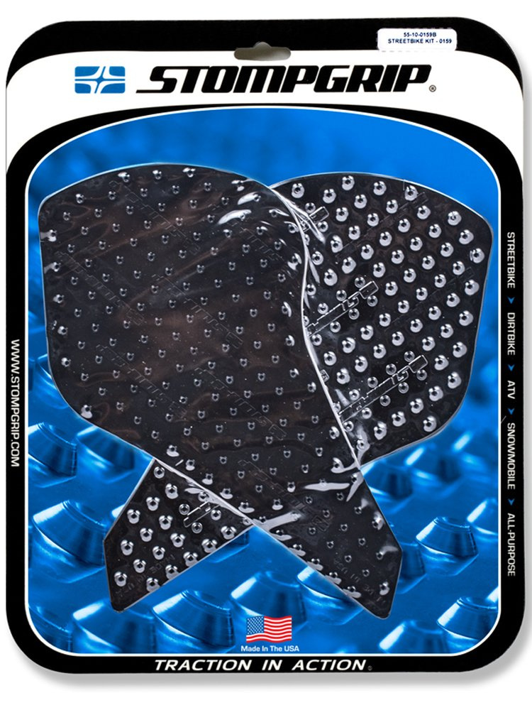 STOMPGRIP to wysokiej jakości produkt amerykańskiego producenta z stanu CALIFORNIA. Każdy profil jest ręcznie wykonany co zapewnia idealne dopasowanie do dedykowanego modelu motocykla. Zapobiegają przesuwaniu się motocyklisty podczas mocnych hamowań, poprawiając tym samym stabilność motocykla. Produkt ten niezbędny jest na torze wyścigowym i bardzo pomocny na drodze.