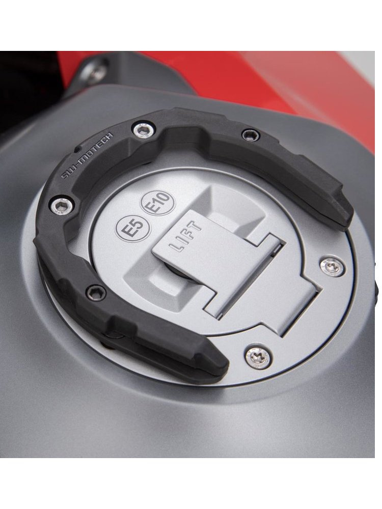 Opatentowany pierścień zbiornika PRO jest dopasowany do wlewu zbiornika motocykla. Zapewnia łatwy i szybki montaż torby na zbiornik.