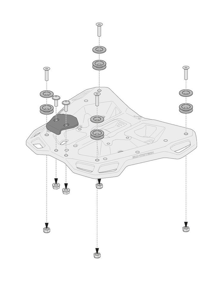 Dedykowane konkretnym modelom motocykli elementy mocujące pozwalają na łatwy montaż stelaża. ADVENTURE-RACK został, zaprojektowany z myślą o motocyklach turystycznych oraz sportowo-turystycznych, dlatego posiada dużą powierzchnię ładunkową. Liczna ilość dużych otworów zapewni stabilne i bezpieczne zamocowanie tylnego bagażu. Przygotowane otwory umożliwią również zamocowanie adapterów do kufrów SW-MOTECH Givi, Krauser i Shad lub SysBags.