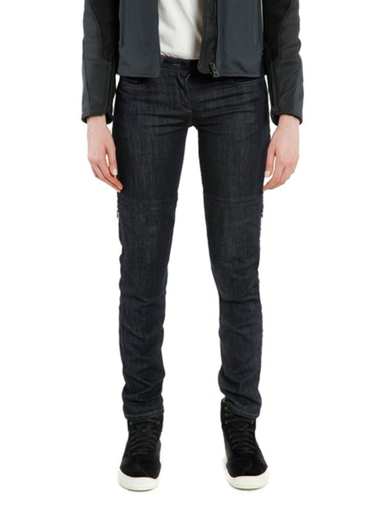 Jeansy to idealna alternatywa dla skórzanych i tekstylnych spodni. Lekkie, przewiewne, a przy tym skutecznie zabezpieczają w razie tarcia po asfalcie. Denim Slim Lady Tex prezentują pewien luzacki styl, w którym śmiało możesz spędzić dzień w pracy bądź wieczór z przyjaciółmi. Spodnie wykonane są z elastycznego jeansu, który został dodatkowo wzmocniony włóknem aramidowym cechującym się wysoką wytrzymałością. Dodatkowe zabezpieczenie stanowią miękkie ochraniacze kolan Pro-Shape 2.0, które można wyjąć od zewnątrz. Opcjonalnie możesz wyposażyć się w ochraniacze bioder. Nawet najlepsza odzież nie zastąpi zdrowego rozsądku na drodze, ale powyższe rozwiązania pozwolą czuć się bezpiecznie na motocyklu. Denim Slim Lady Tex sprawią, że będziesz wyglądać lifestylowo na swojej ukochanej maszynie.