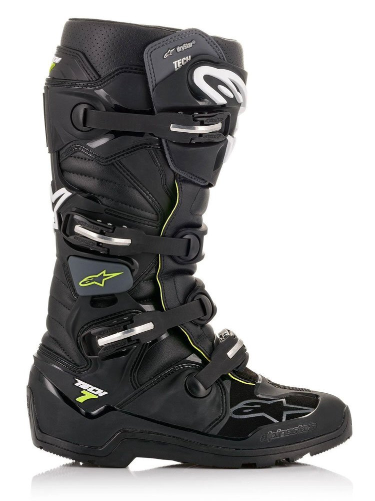 Buty Tech 7 Enduro łączą w sobie wytrzymałość, trwałość i wygodę jaką zapewnia odpowiednio wyprofilowana cholewka. Została wykonana z mikrofibry i wzmocniona poliuretanem, tak aby zagwarantować maksymalny poziom wodoodporności oraz trwałości. Podeszwa stworzona z odpowiednio dobranej mieszanki, która daje motocyklistom pewną przyczepność do nawierzchni, ale także odpowiada za wsparcie nogi zarówno podczas jazdy jak i postoju. Buty wyposażone są w oddychającą i wodoodporną membranę Drystar®, która zapewni ochronę nawet w niekorzystnych warunkach pogodowych. Elastyczne wewnętrzne elementy i miękka, wyprofilowana wkładka EVA poprawiają komfort noszenia, a także dają dodatkowe wsparcie. Innowacyjny system zapinania zawiasów gwarantuje łatwe i szybkie zamykanie, a dodatkowy rzep w górnej części buta zapewnia idealne dopasowanie. Model Tech 7 Enduro idealnie sprawdzi się w trudnych warunkach i bardzo wymagających trasach.
