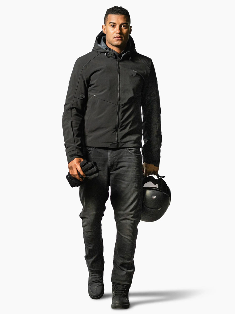 Afterburn H2O to kurtka motocyklowa oferująca wysoki komfort jazdy podczas przemierzania zatłoczonych ulic miast. Wykonana jest z oddychającego, elastycznego i trwałego Softshellu o wysokiej gęstości. Wkomponowana w wewnętrzną powłokę kurtki membrana Hydratex® oferuje doskonałą ochronę przed deszczem i wiatrem. W zestawie z kurtką otrzymujemy podpinkę ocieplającą, która zapewni wysoki komfort termiczny podczas chłodniejszych dni. Na rękawach zamieszczone są zamki wentylacyjne, które umożliwiają dopływ chłodnego powietrza, natomiast ciepłe powietrze wydalane jest prze otwory na plecach. Tak skonstruowana kurtka pozwala na utrzymanie przyjemnego klimatu podczas jazdy w słoneczne i ciepłe dni. Za bezpieczną jazdę odpowiadają certyfikowane ochraniacze Seesmart na ramionach i łokciach oraz strategicznie rozmieszczone elementy odblaskowe, dzięki którym motocyklista jest bardziej widoczny dla innych kierowców. Poziom ochrony można rozszerzyć zakładając opcjonalny ochraniacz pleców Seesoft. Kurtka ta posiada system regulacji składający się z rzepów na mankietach, nap na rękawach i ściągacza na dole kurtki. Odpinany kaptur z regulacją stanowi dodatkową ochronę przed niesprzyjającymi warunkami pogodowymi. Posiada standardowe kieszenie zewnętrzne i wewnętrzne oraz zamek i pętelkę do połączenia ze spodniami i jeansami marki REV’IT!
