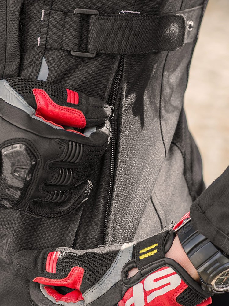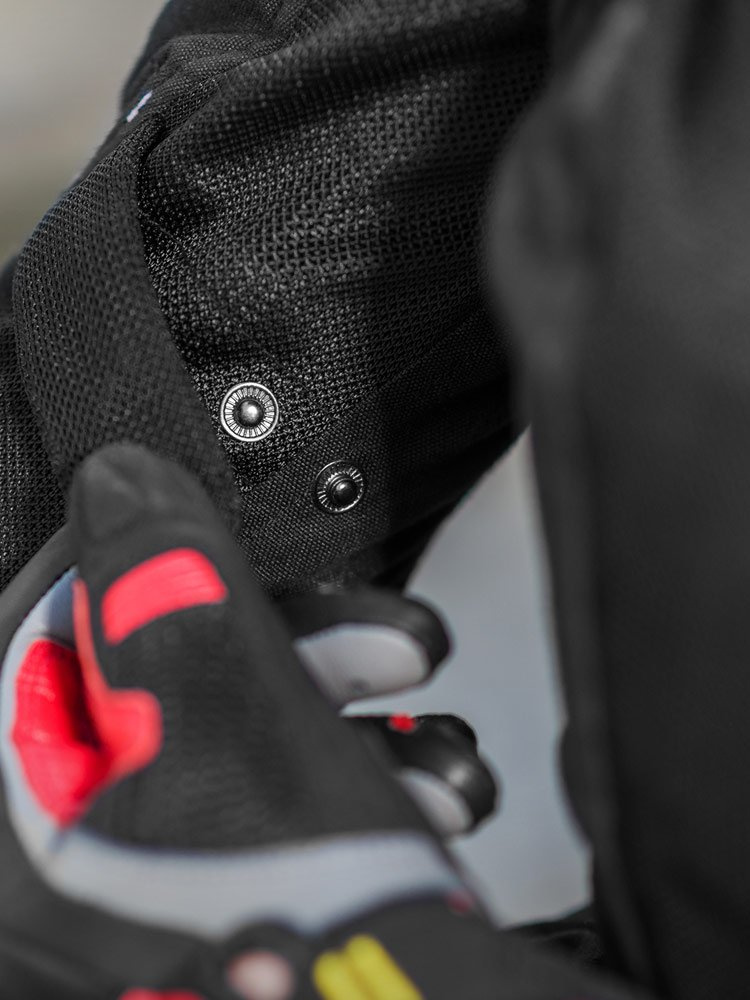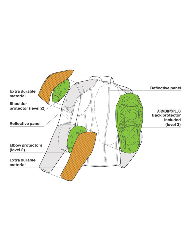Jet to model tekstylnej kurtki motocyklowej od marki Shima. Kurtka dedykowana dla kobiet, które rozglądają się za kurtką na lato. Przewiewna meshowa tkanina zagwarantuje stały dopływ świeżego powietrza podczas upalnych dni w letniej porze roku. Membrana NextDry z kolei zapewni ochronę, gdy dopadnie nas deszcz lub silny wiatr, wywiązując się z powierzonego zadania wzorowo. Umieszczone na ramionach i łokciach ochraniacze są certyfikowane i zadbają o nasze bezpieczeństwo podczas ewentualnego upadku z motocykla. Nasze wyposażenie możemy rozszerzyć poprzez zastosowanie protektora klatki piersiowej SAS-TEC (sprzedawany osobno). Night Vision to system odblaskowych paneli, który poprawi widoczność użytkownika na motocyklu po zmroku. Kurtkę możemy łączyć ze spodniami, jeśli mamy takie życzenie, a elementem umożliwiającym takie rozwiązanie jest zamek 360 stopni.