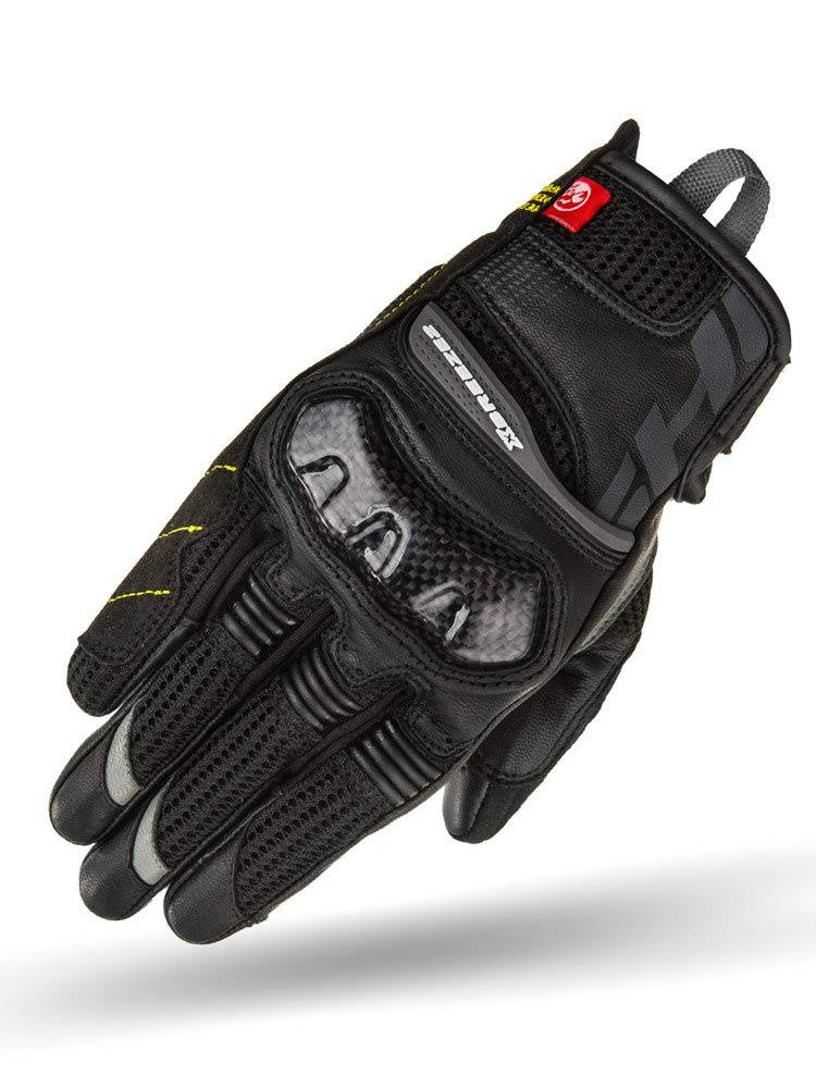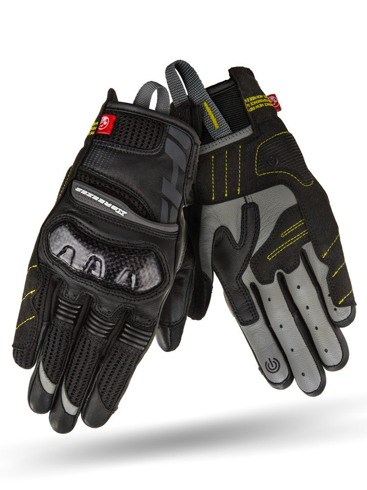 Shima X-Breeze 2 to krótkie, damskie rękawice motocyklowe. Za bezpieczeństwo odpowiadają twarde protektory kostek dodatkowo wzmocnione włóknem węglowym. Boki rękawic wraz z nadgarstkami pokryte są panelami ArmorPlus, które chronią miejsca najbardziej narażone na uderzenia lub przetarcia. Wstawki ze skóry zapewniają dłuższą żywotność rękawic oraz dodatkową ochronę.  Komfort podczas jazdy w upalne dni zapewnią panele z tkaniny 3D Mesh na palcach oraz w okolicach mankietu. Gwarantują one doskonałą wentylację oraz odpowiednią cyrkulacje powietrza. Elastyczne panele umożliwiają większą swobodę ruchów. Palec wskazujący i kciuk wyposażone są w technologię TouchTip, która umożliwia obsługę ekranów dotykowych. Pasek do naciągania daje możliwość lepszego dopasowania rękawic oraz zapobiega ich zsunięciu się podczas jazdy. Paski umieszczone w dolnej części wewnętrznej strony rękawic ułatwiają wsuwanie ich na dłoń.