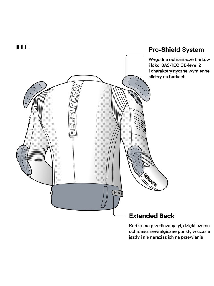 • elastyczne wstawki skórzane na łokciach i łopatkach,