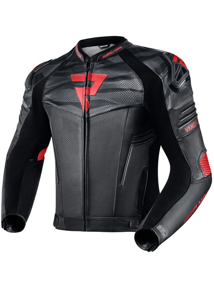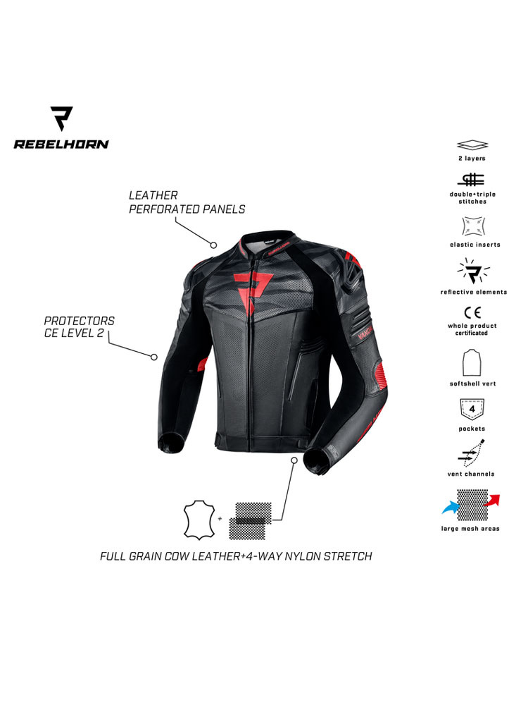 Kurtka motocyklowa skórzana Rebelhorn Vandal czarno-fluo czerwona