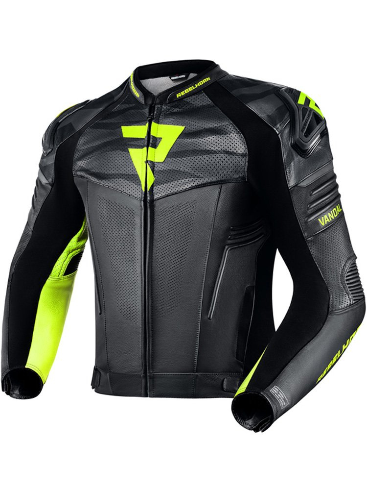 Kurtka motocyklowa skórzana Rebelhorn Vandal czarno-fluo żółta