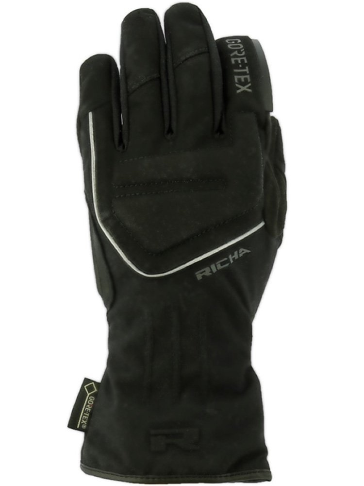 W okresie wiosenno-jesiennym warto zaopatrzyć się w rękawice motocyklowe Invader GTX od marki Richa. Jak sama nazwa wskazuje, model ten posiada wbudowaną membranę Gore-Tex®, która słynie ze swoich doskonałych właściwości ochronnych. Gwarantuje suchość, ciepło oraz oddychalność, dzięki czemu zapewniony masz wysoki komfort jazdy bez względu na warunki pogodowe. Zewnętrzna powłoka to połączenie poliestru i poliamidu, które zapewniają wygodne i bezpieczne użytkowanie rękawic. Komfortowe wnętrze zapewnia przyjemna dla skóry wyściółka. Za bezpieczeństwo odpowiadają miękkie ochraniacze kostek i dłoni wykonane z amortyzującej pianki. Ponadto newralgiczna dłoń wzmocniona jest odporną na ścieranie i przetarcie skórą z podwójnym szwem. Bezpieczeństwo bierne wspomagają elementy odblaskowe 3M™, dzięki którym będziesz doskonale widoczny po zmroku i w słabym świetle. Rękawice zapewniają bardzo dobrą przyczepność do manetki, dzięki antypoślizgowej wstawce na dłoni. Długi mankiet wyposażony jest w solidne zapięcie na rzep. Regulacja w nadgarstku zapewnia wygodne i łatwe dopasowanie. Funkcjonalność rękawic podnoszą dodatki w postaci wycieraczki do wizjera oraz specjalnych panelów do obsługi urządzeń z ekranem dotykowym.