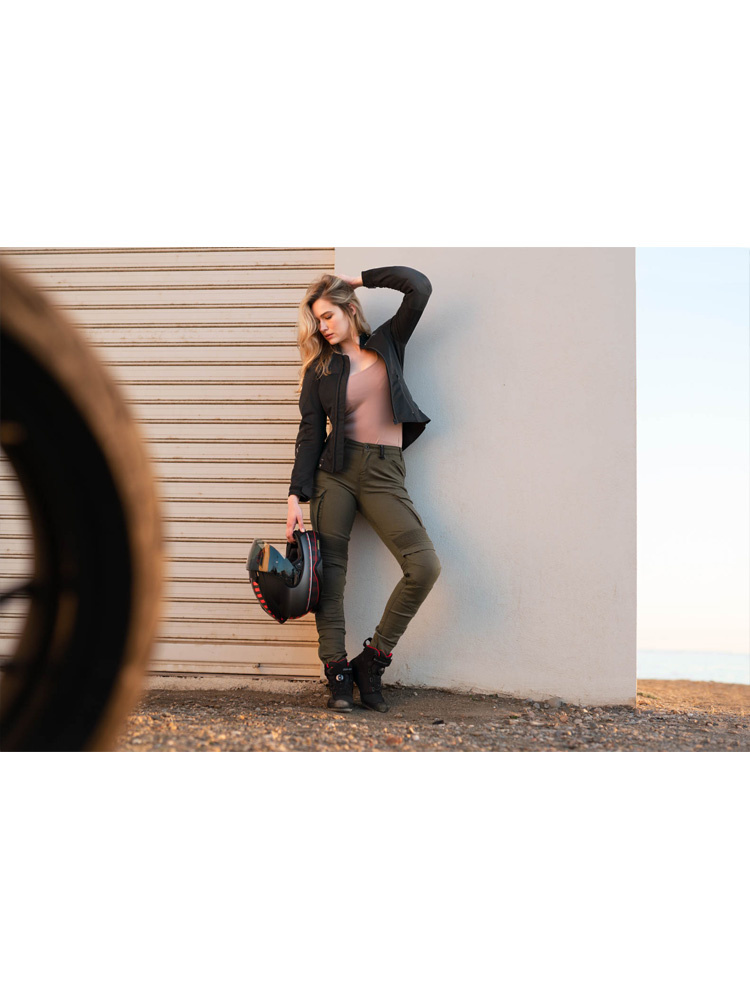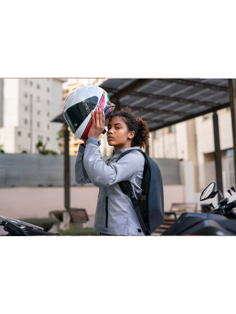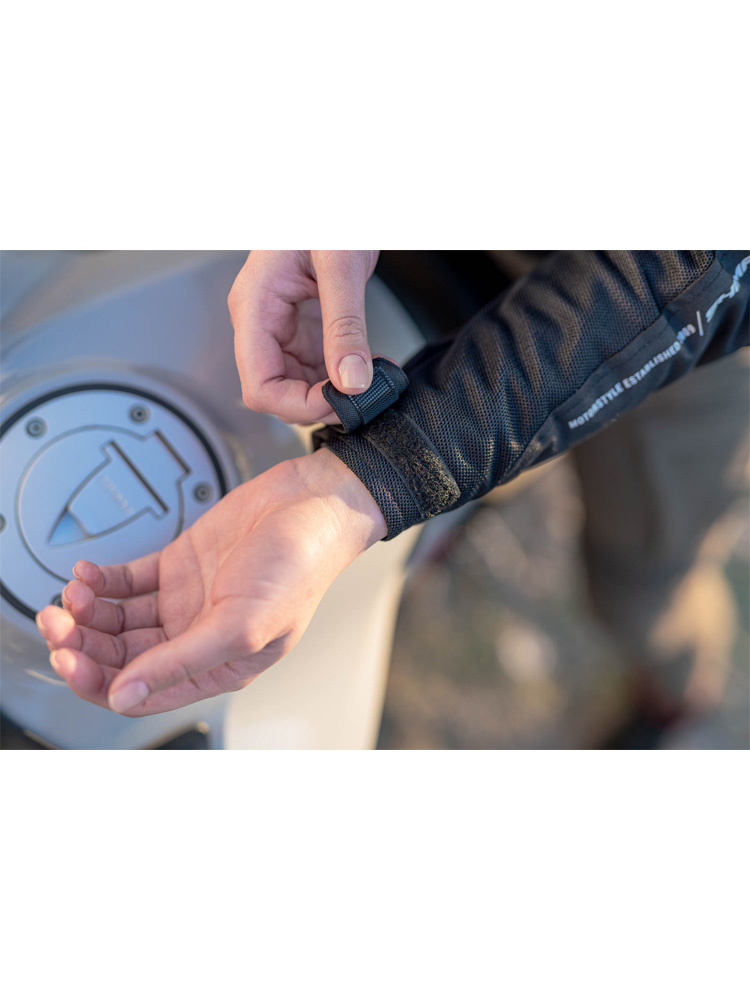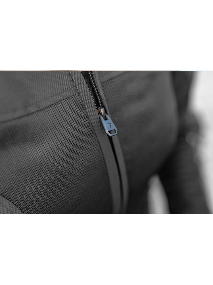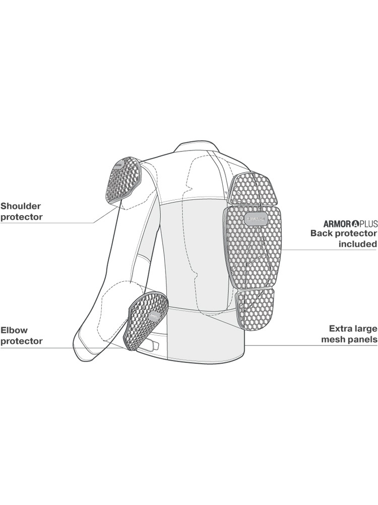 Shima OpenAIR Lady to idealna kurtka do jazdy w upalne dni. Wykonana jest z lekkiej i przewiewnej tkaniny meshowej a dzięki systemowi H3 Heat Free z powiększonymi panelami zapewnia dodatkową, optymalną wentylacje. Za bezpieczeństwo odpowiadają certyfikowane protektory Hi-flow łokci i ramion o specjalnej strukturze plastra miodu zapewniającego skuteczną ochronę oraz maksymalny przepływ powietrza. Kurtka wyposażona jest również w ochraniacz pleców CE poziomu 2 wykonanego w tej samej technologi oraz o tej samej strukturze. Krótki zamek błyskawiczny wraz ze specjalną pętelką łączącą umożliwiają szybkie i wygodne połączenie kurtki ze spodniami. Regulacja szerokości w talii umożliwia lepsze indywidualne dopasowanie. System EvoLink umożliwia połączenie kurtki z opcjonalną warstwą grzewczą lub chłodzącą za pomocą intuicyjnie rozmieszczonych zapięć.