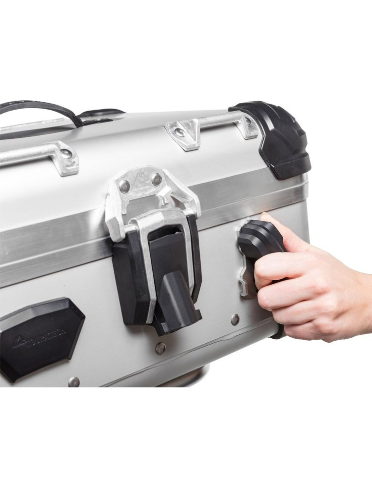 Całkowicie wodoodporny kufer centralny wykonany z wytrzymałego, polerowanego aluminium z narożnikami ochronnymi. Podstawowym elementem ZEGA jest nowo opracowany i zaprojektowany system mocowania na stelażach, który łączy w sobie łatwą obsługę z bezpiecznym mocowaniem. Twój kufer pozostaje bezpiecznie przymocowany do motocykla, nawet jeśli działają na niego bardzo duże siły. Montaż jest bardzo prosty, mechanizm blokujący jest wyposażony w blokadę bezpieczeństwa, która jest aktywna nawet jeśli jej nie blokujesz, a obsługa jest łatwa nawet w najgrubszych rękawicach. Wystarczy wsunąć haczyki na zębatkę i nacisnąć dźwignię napinającą w dół, aż wskoczy na swoje miejsce. Kufer na stelażu może być dodatkowo zabezpieczony przed kradzieżą za pomocą zamka (sprzedawanego osobno). Aby zdemontować kufer, po prostu pociągnij za dźwignię i zdejmij kufer ze stelaża. Mechanizm sprawdza się również w wymagających warunkach - brud, piasek, błoto itp. Na pokrywie znajdują się cztery górne szlufki do mocowania dodatkowego miękkiego bagażu. Nowo opracowany system wentylacji zmniejsza ciśnienie w sakwie lub na sakwie w przypadku zmiany wysokości.