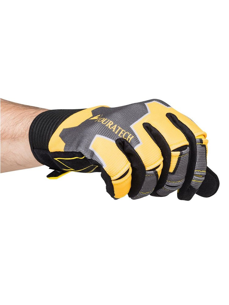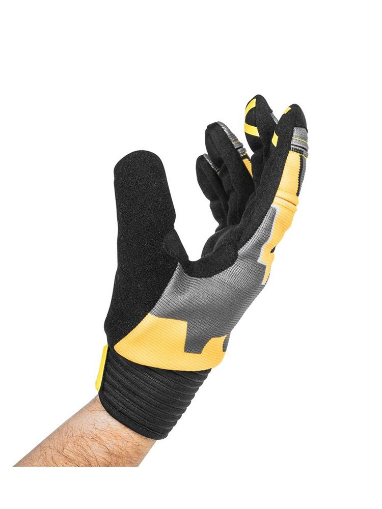 Rękawice cross Touratech MX-Ride to lekki i dobrze wentylowany model zapewniający maksymalny komfort i kontrolę podczas jazdy w trudnym terenie. Wykonane zostały z materiału odpornego na przetarcia oraz przyjemnej w dotyku syntetycznej skóry. Minimalna ilość szwów na części chwytnej oraz podwójna warstwa materiału na kciuku zmniejsza ryzyko otarć, a silikonowe wstawki zapewniają doskonały chwyt. Materiał frotte na wierzchu rękawicy sprawdzi się jako wycieraczka do gogli. Palce od wewnątrz posiadają otwory wentylacyjne zapewniające optymalną cyrkulację powietrza. Zastosowanie na kostkach palców przeszyć pozwala na lepsze dopasowanie oraz sprawniejsze operowanie osprzętem motocykla. Rękawice MX-Ride posiadają krótki mankiet z solidnym zapięciem na rzep oraz neoprenowym wykończeniem.